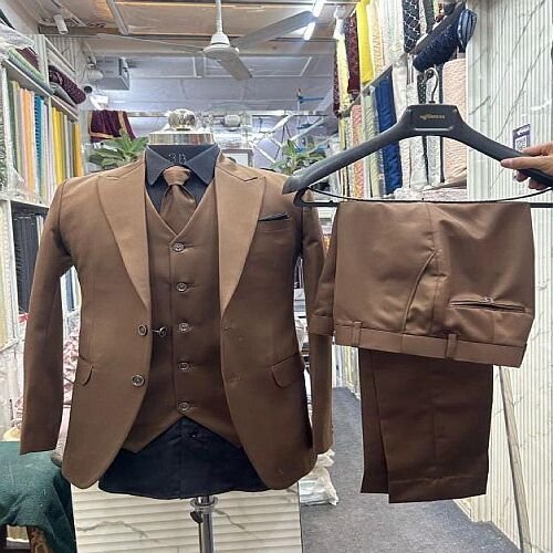 Bespoke Brown Two Button Classic Mens Three Piece Suit