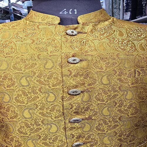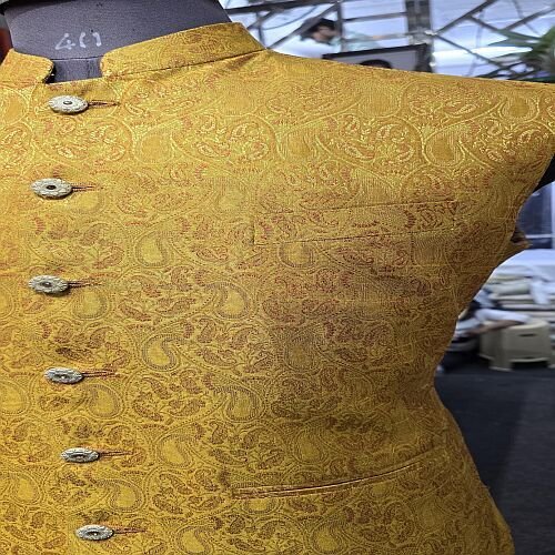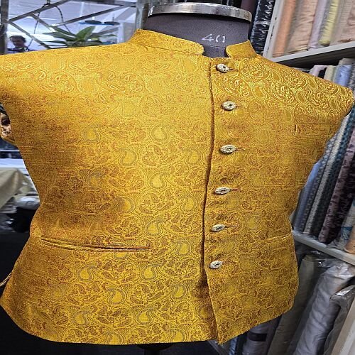 Elegant Golden Brocade Jodhpuri Nehru Jacket