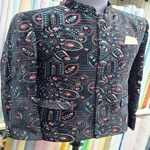 Mens Black Bespoke Bandhgala Embroidery Jodhpuri Suit