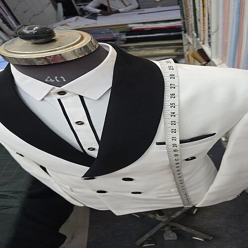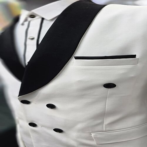Crafted for those who value exceptional craftsmanship, this handcrafted suit is a celebration of refined taste and contemporary flair. With a double-breasted embroidered detail and a custom button flower, it blends timeless elegance with personalized charm.