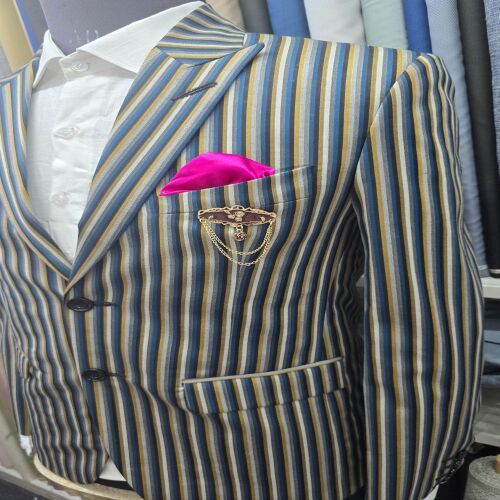 Looking for something unique? Our designer tailors specialize in bespoke menswear and alternative tailoring—like sleek pinstripe two-piece suits—ideal for grooms, groomsmen, or anyone looking to make a bold yet elegant statement. It’s also a thoughtful option for personalized groomsmen gifts or standout event wear.
